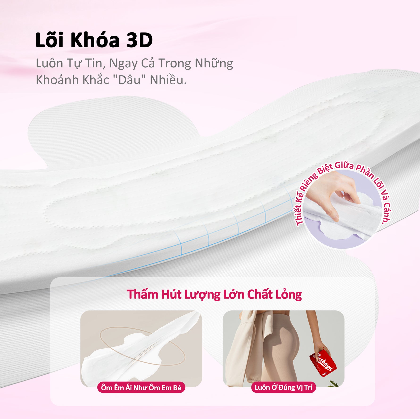 Với Lớp Hút Rộng Hơn, Tăng Khả Năng Thấm Hút 30%; Ngăn Chặn Máu Rò Rỉ, Tăng Cường Bảo Vệ Chống Tràn.
