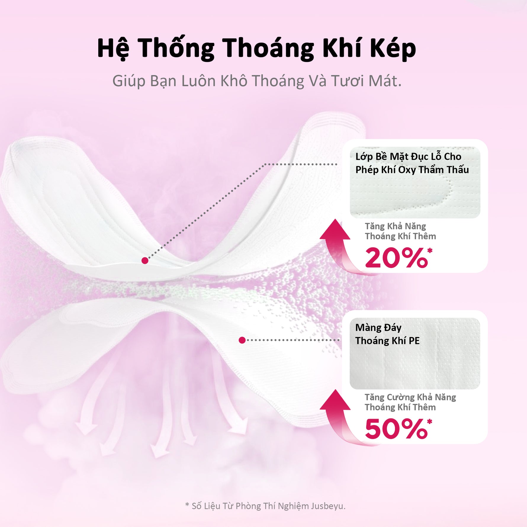 Lớp Hút Phủ Toàn Bộ 100% Giúp Tăng Tốc Độ Thấm Hút Dịch Kinh Nguyệt Xuống Dưới, Giữ Cho Bề Mặt Luôn Khô Ráo.
