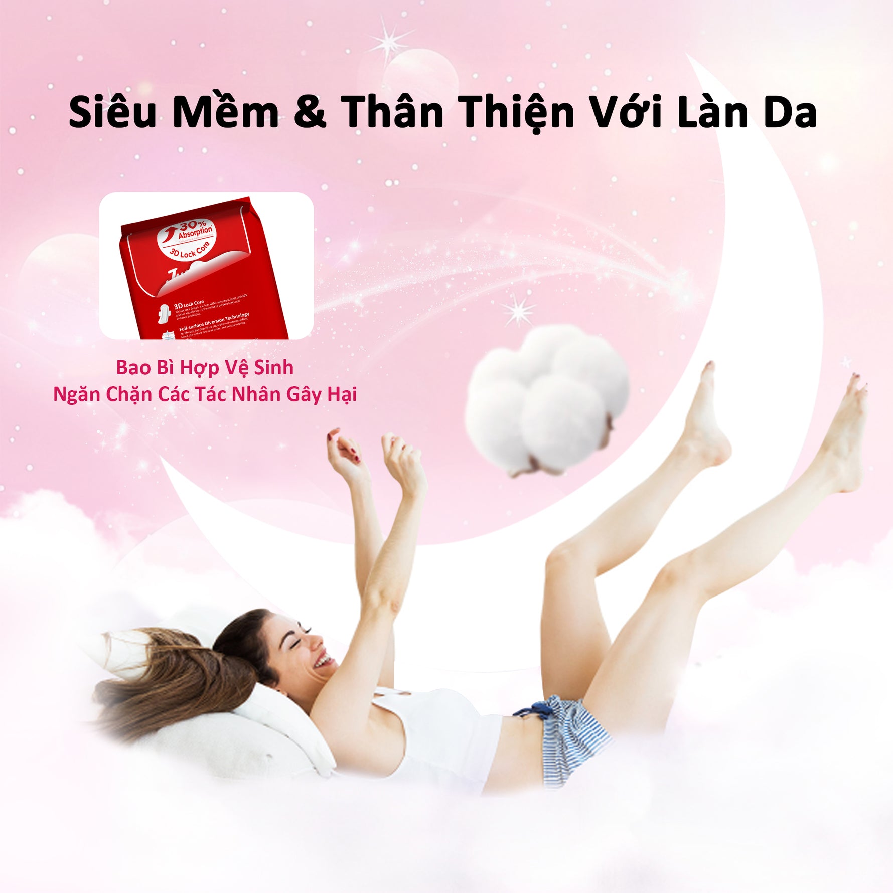 Băng Vệ Sinh Jusbeyu Siêu Mềm Mỏng Ngày Và Đêm 245mm/290mm/350mm