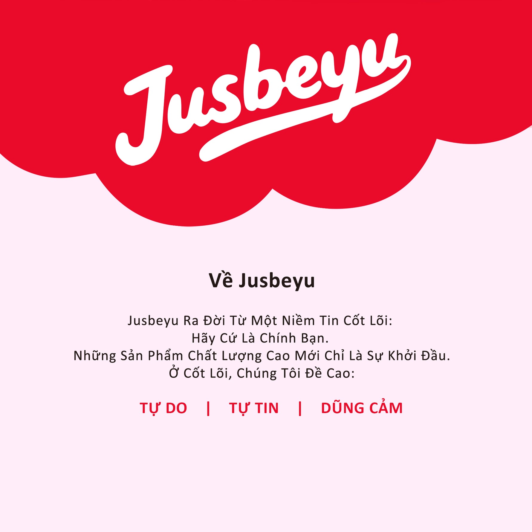 Jusbeyu Ra Đời Từ Một Niềm Tin Cốt Lõi: Hãy Cứ Là Chính Bạn. Đó Là Biểu Tượng Của Một Phong Cách Sống Mới Cho Những Phụ Nữ Đề Cao Sự Chân Thật Và Thể Hiện Bản Thân.
