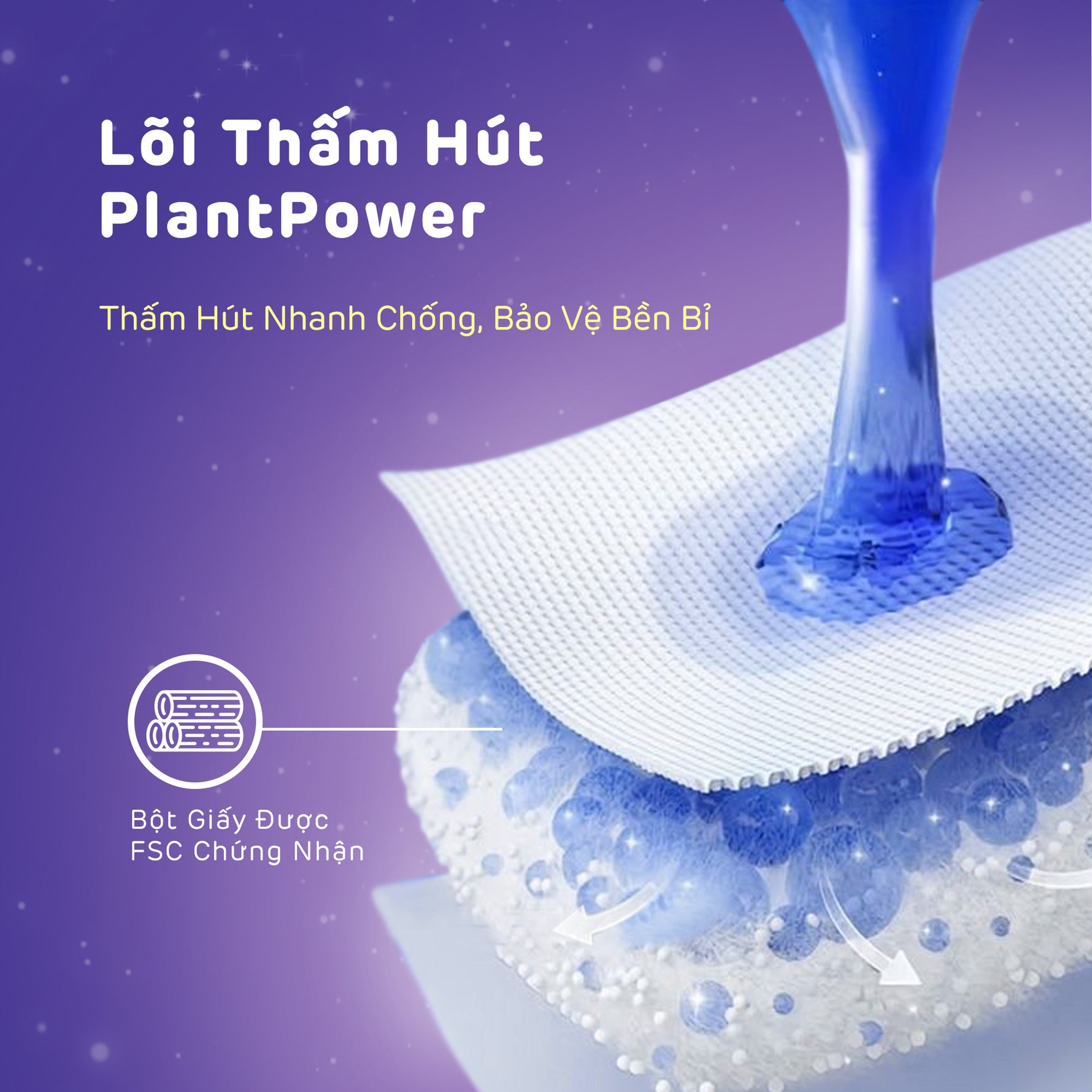 - Lõi siêu hút với khả năng hấp thụ lên đến 12 giờ giúp chống tràn hiệu quả